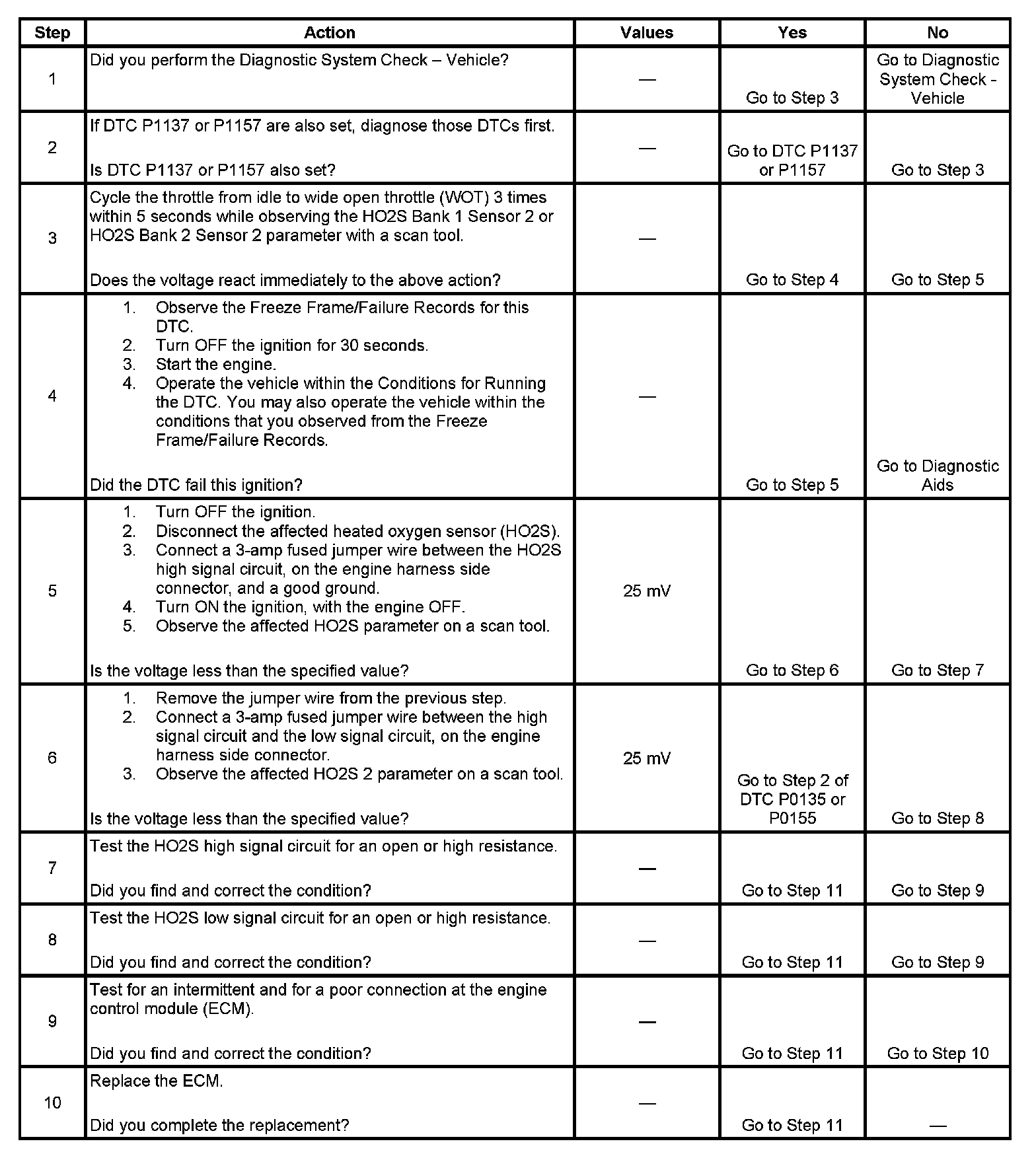 - If the HO2S deterioration is significant enough, other HO2S DTCs may set or be present in concurrence with this DTC.