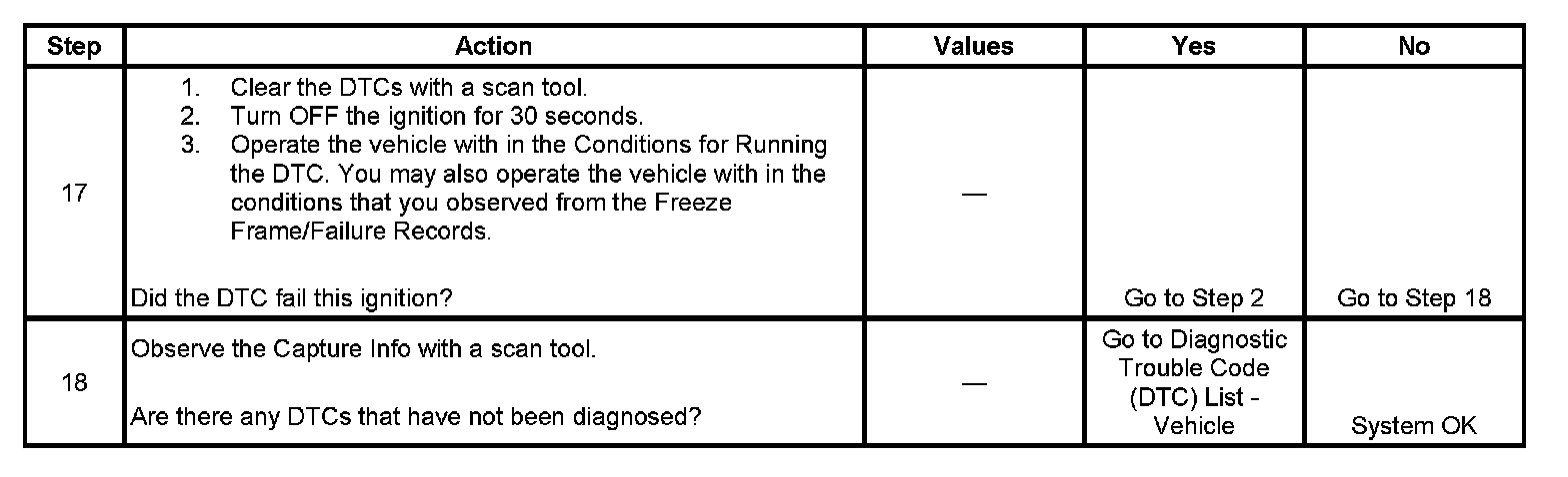 - A current DTC, Last Test Failed, clears when the diagnostic runs and passes.
