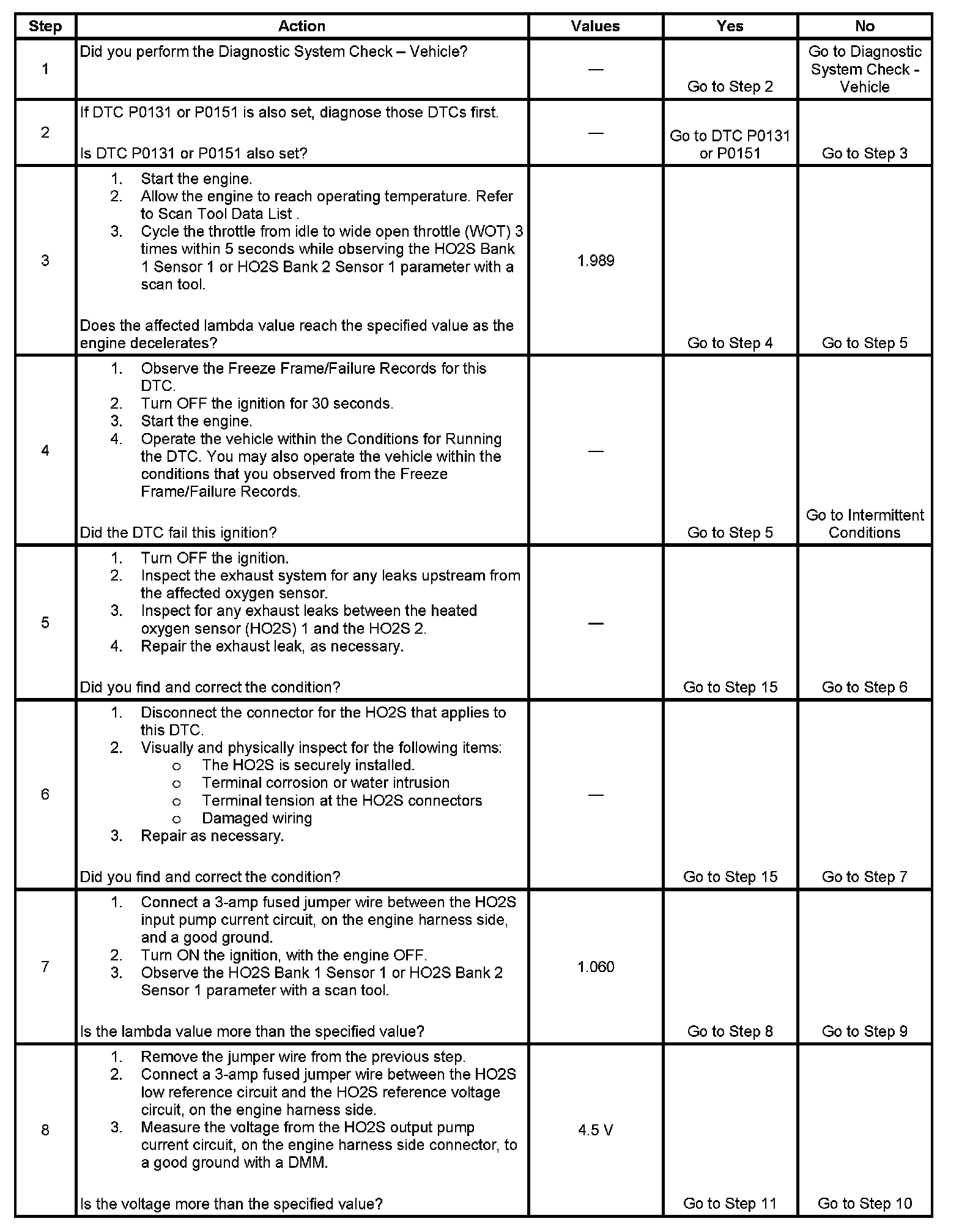 - DTCs P0030, P0031, P0032, P0036, P0037, P0038, P0050, P0051, P0052, P0056, P0057, P0058, P0131, P0132, P0133, P0135, P0137, P0138, P0139, P0140, P0141, P0151, P0152, P0153, P0155, P0157, P0158, P0159, P0160, P0161, P1137, P1138, P1157, P1158 are not set.