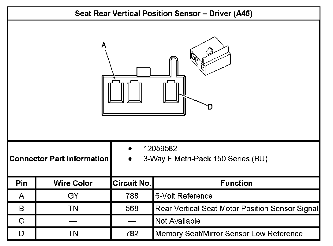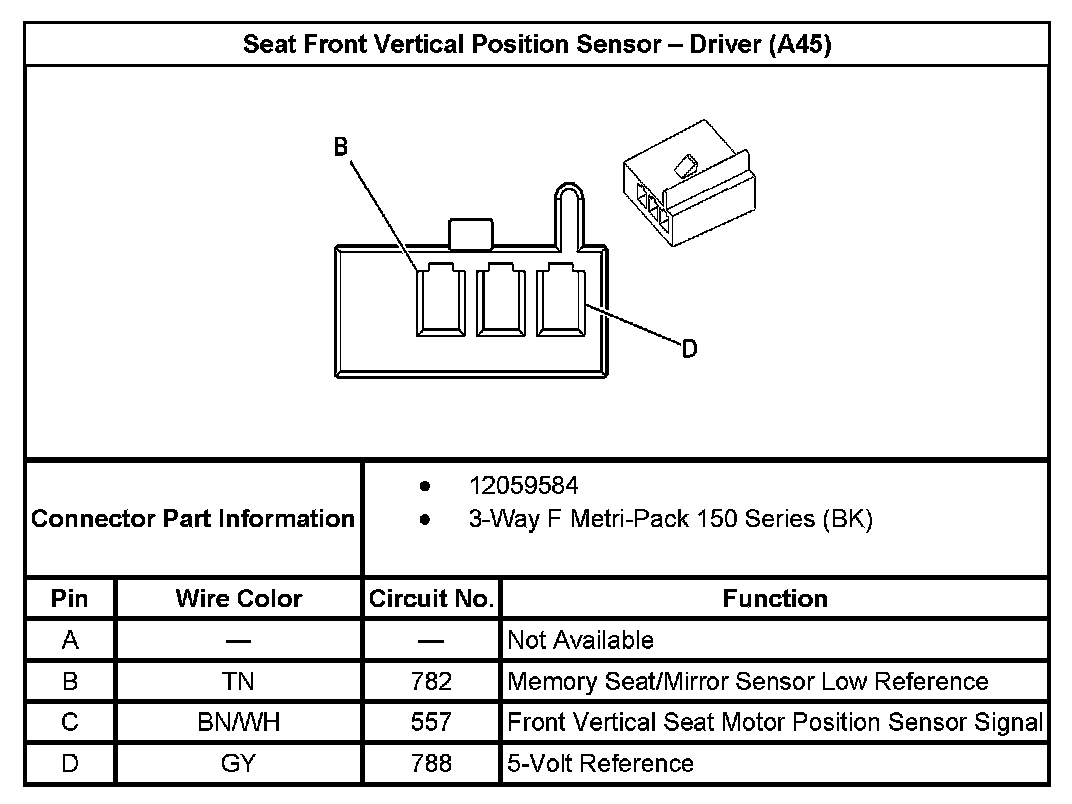 Seat Rear Vertical Position Sensor - Driver (With RPO Code A45):