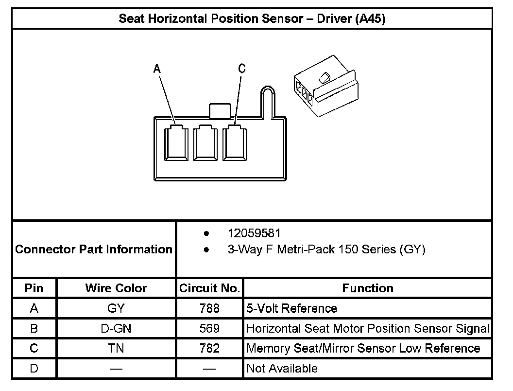 Seat Horizontal Position Sensor - Driver (With RPO Code A45):