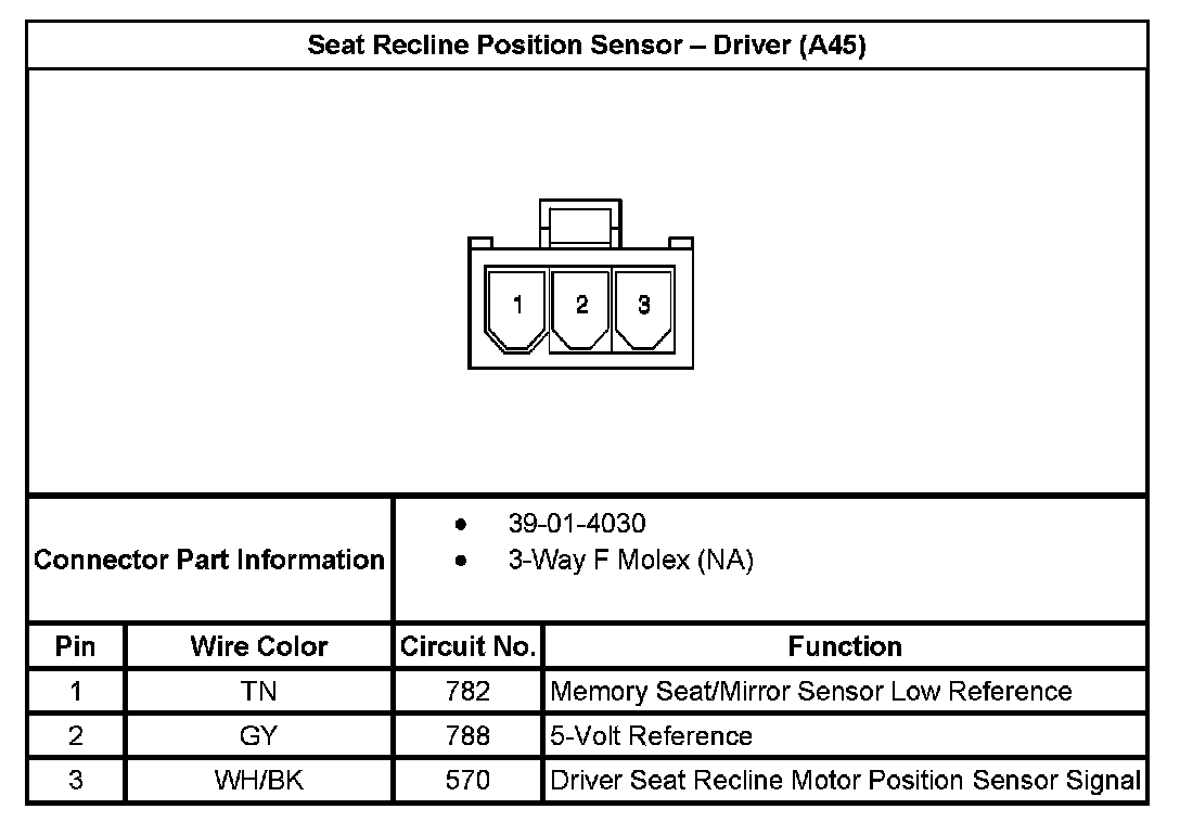 Seat Recline Position Sensor - Driver (With RPO Code A45):