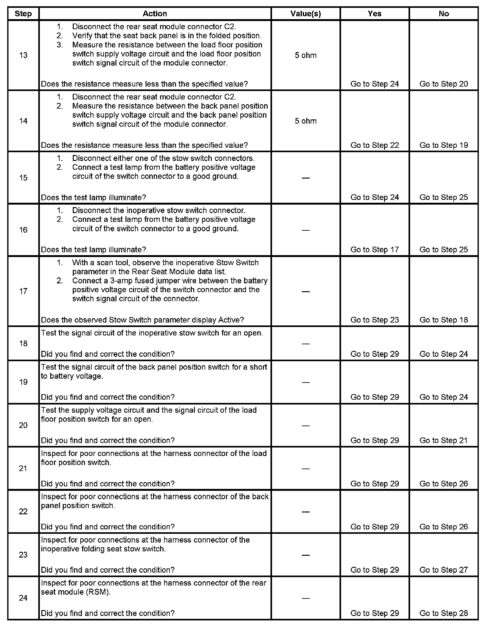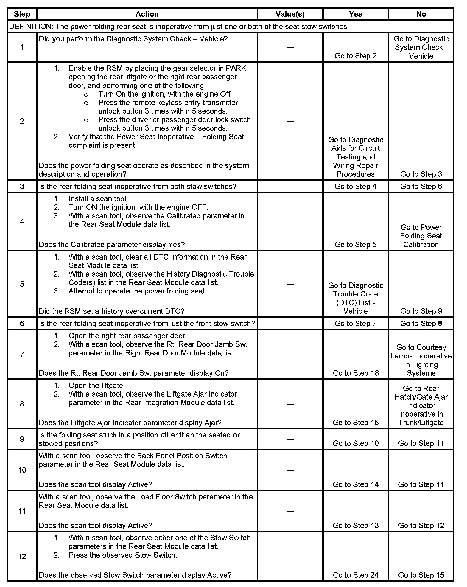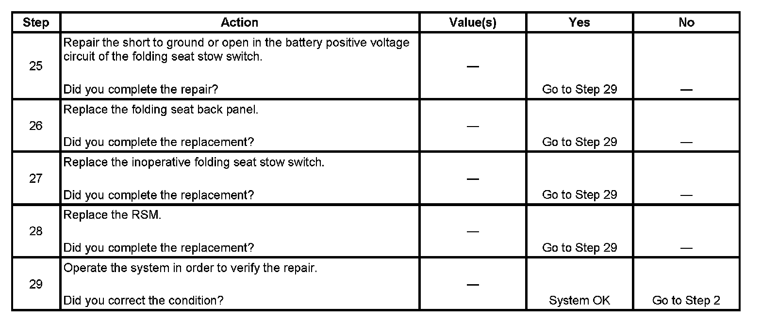 6. This step determines from which stow switch the folding seat is inoperative.