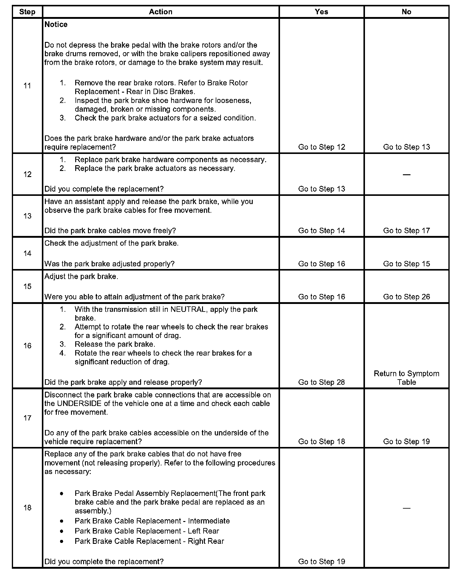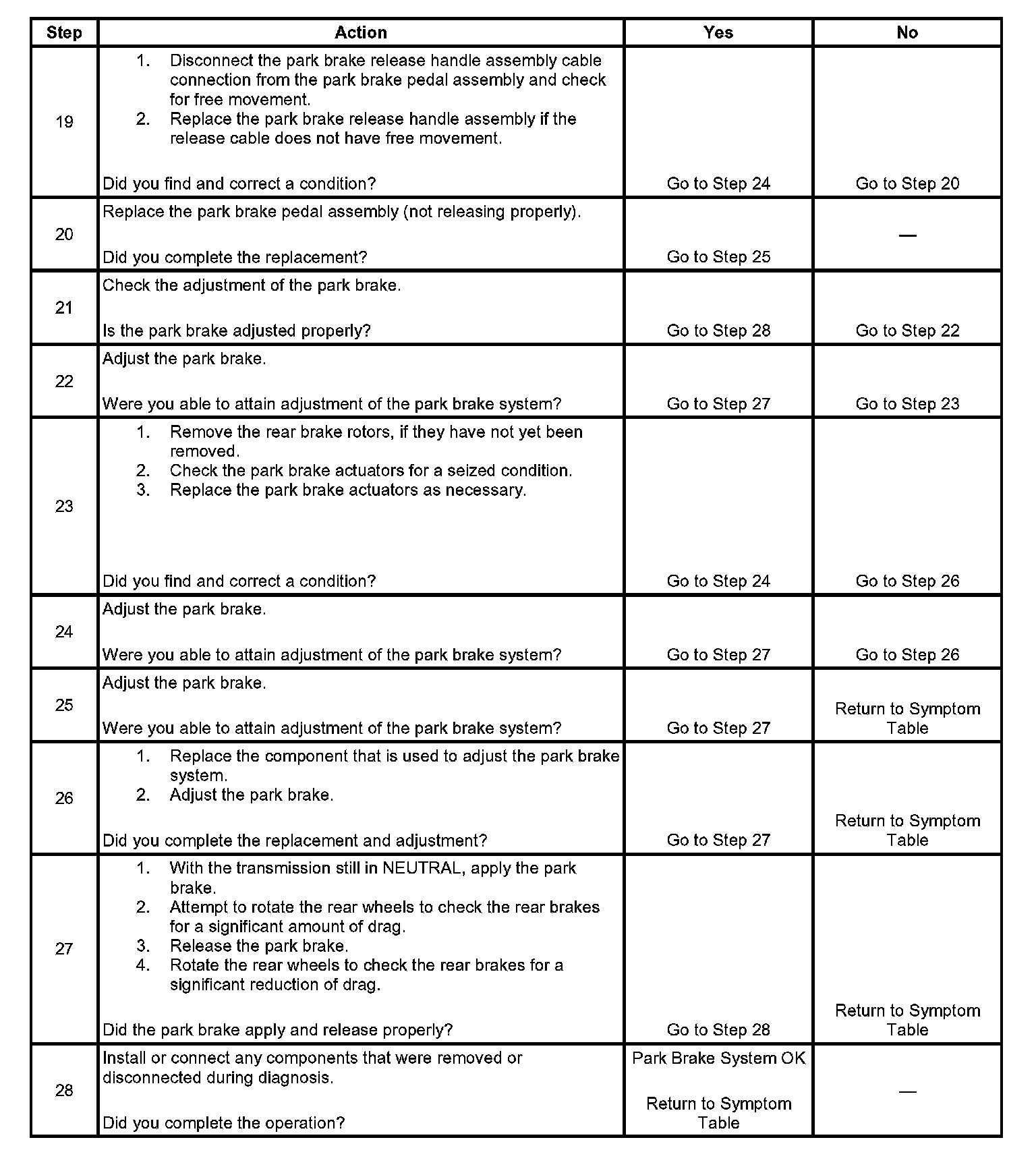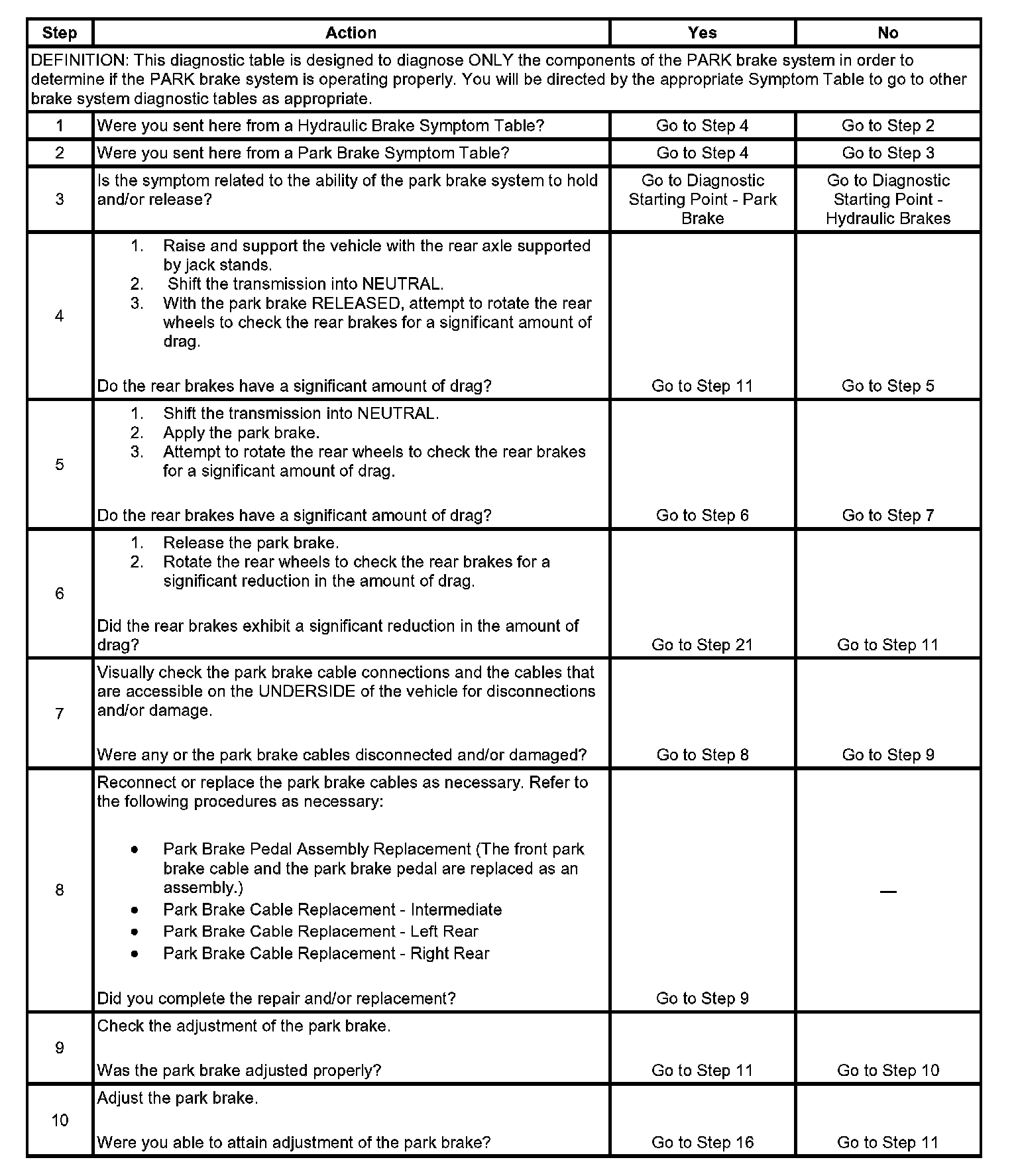 Park Brake System Diagnosis