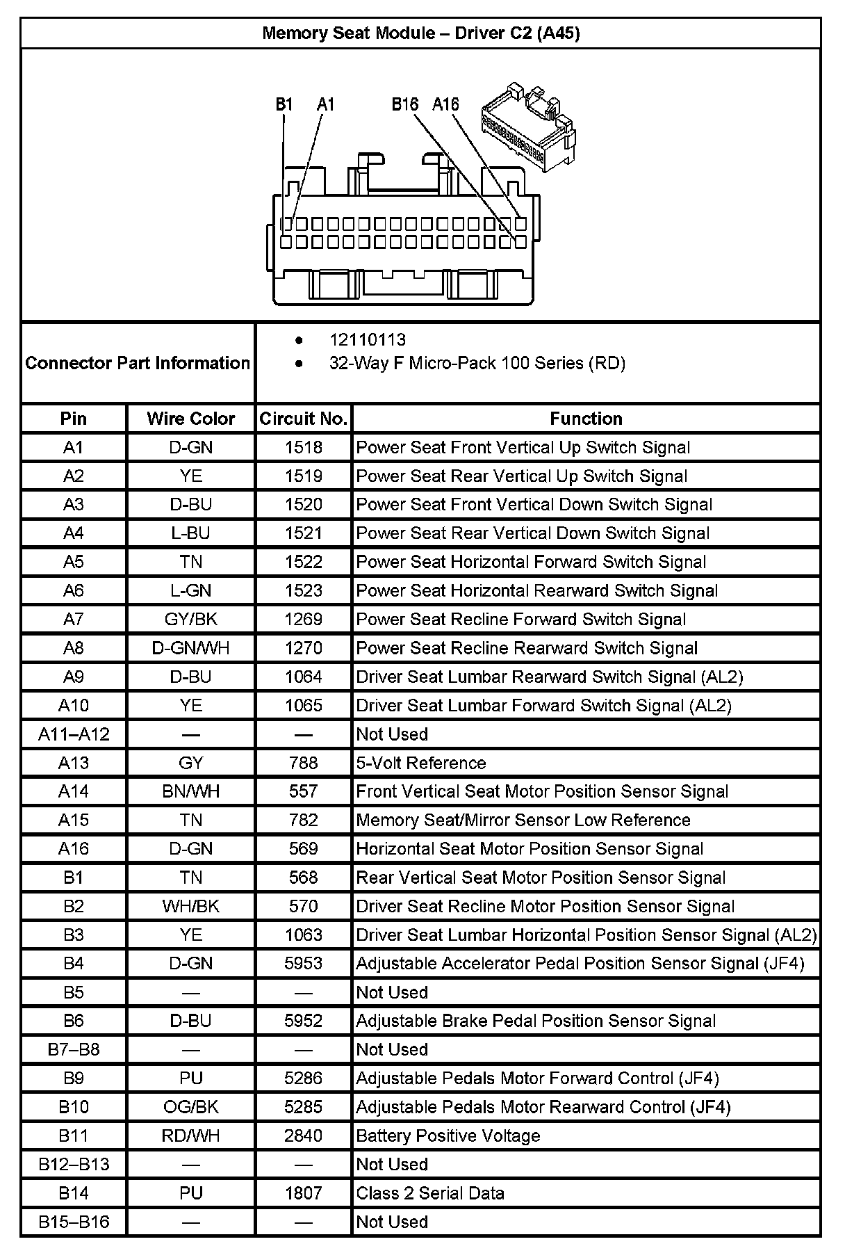 Memory Seat Module - Driver C2 (With RPO Code A45):