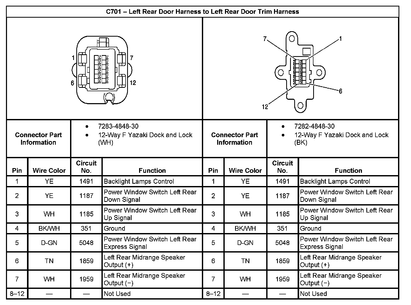C701 - Left Rear Door Harness To Left Rear Door Trim Harness: