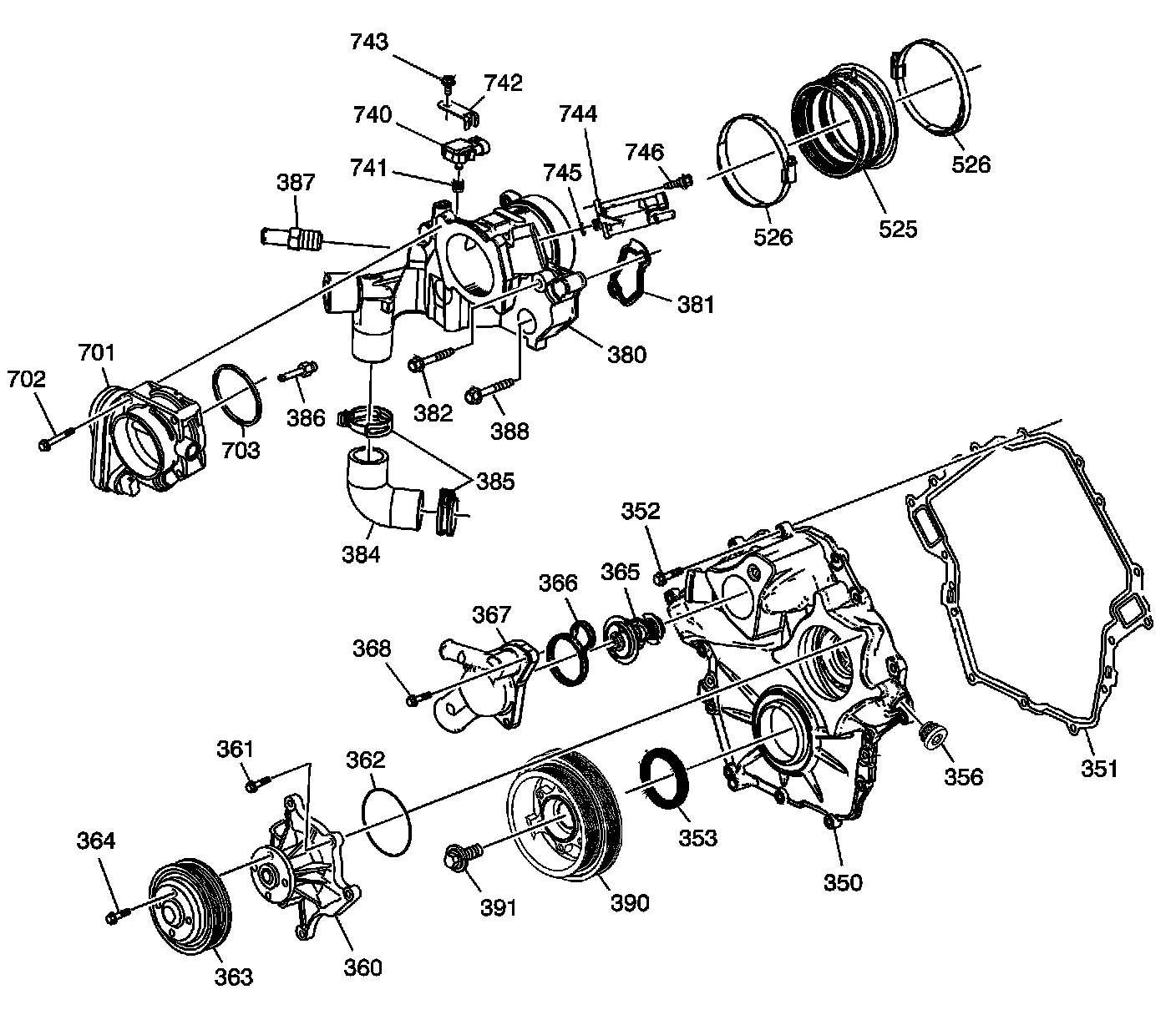 Engine Front Cover, Water Crossover and Throttle Body Assembly