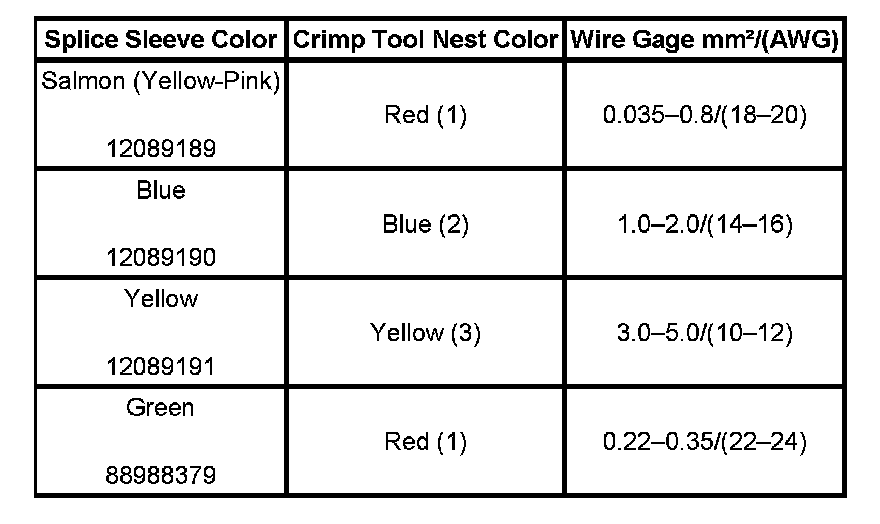 4. Select the proper DuraSeal splice sleeve according to the wire size. Refer to the above table at the beginning of the repair procedure for the color coding of the DuraSeal splice sleeves and the crimp tool nests.