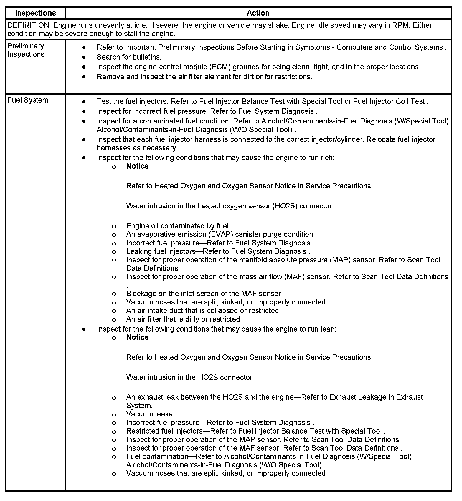 Rough, Unstable, or Incorrect Idle and Stalling
