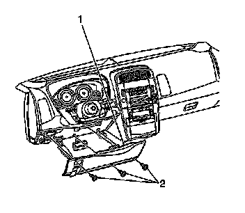 2. Remove the screws (2) securing the knee bolster trim (1) to the knee bolster bracket.