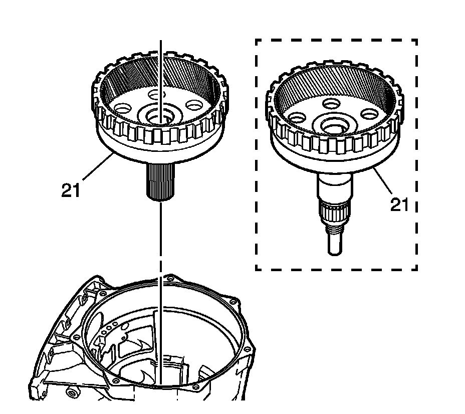 Remove the output shaft assembly (21) from the case (24).