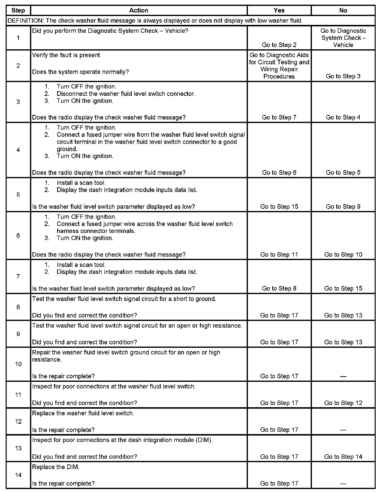 Low Washer Fluid Indicator Malfunction