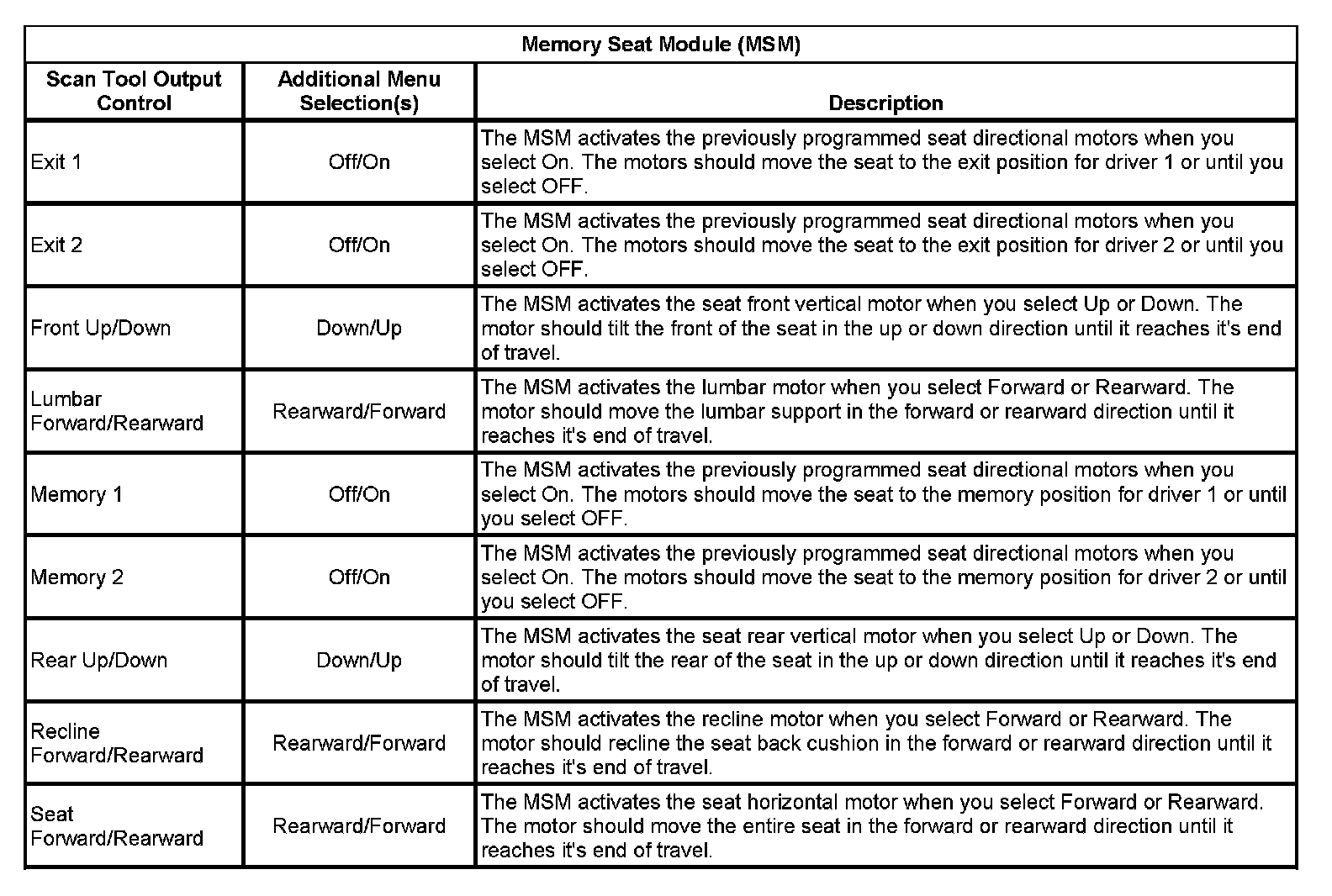 Memory Seat Module (MSM)
