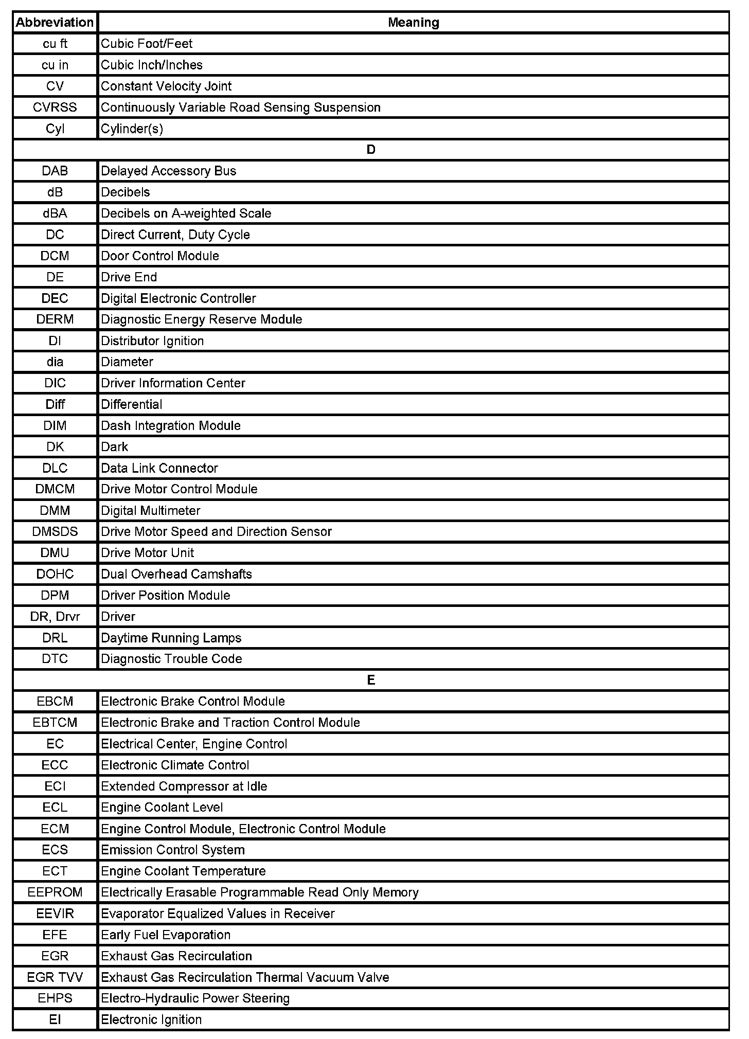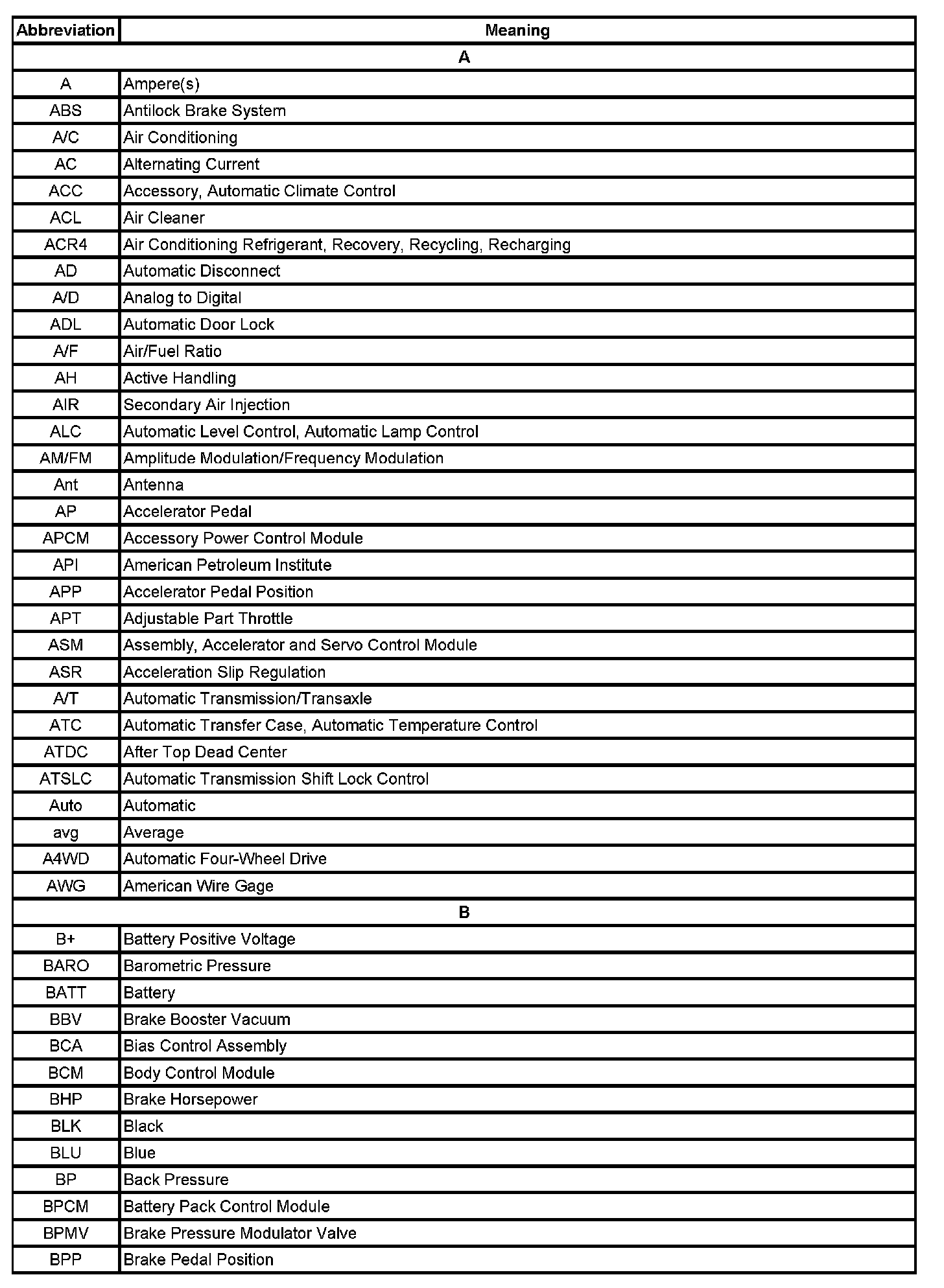ABBREVIATIONS AND MEANINGS