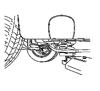 IMPORTANT: The front hoist pads must not contact the rocker panels, the front fenders, the floor pan, or the stone guard moldings. Remove the jacking covers from the rocker panels if necessary.