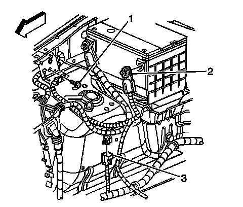 1. Connect the battery negative (2) cable to the battery.