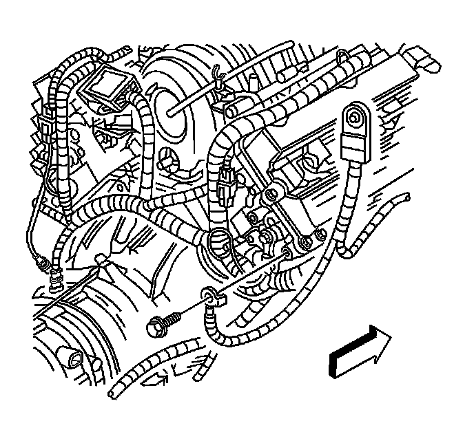 7. Remove the bolt securing the battery negative cable to the engine block.
