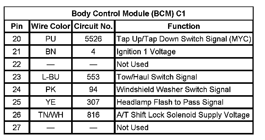 Body Control Module (BCM) C1 (Pin 20 To 27):