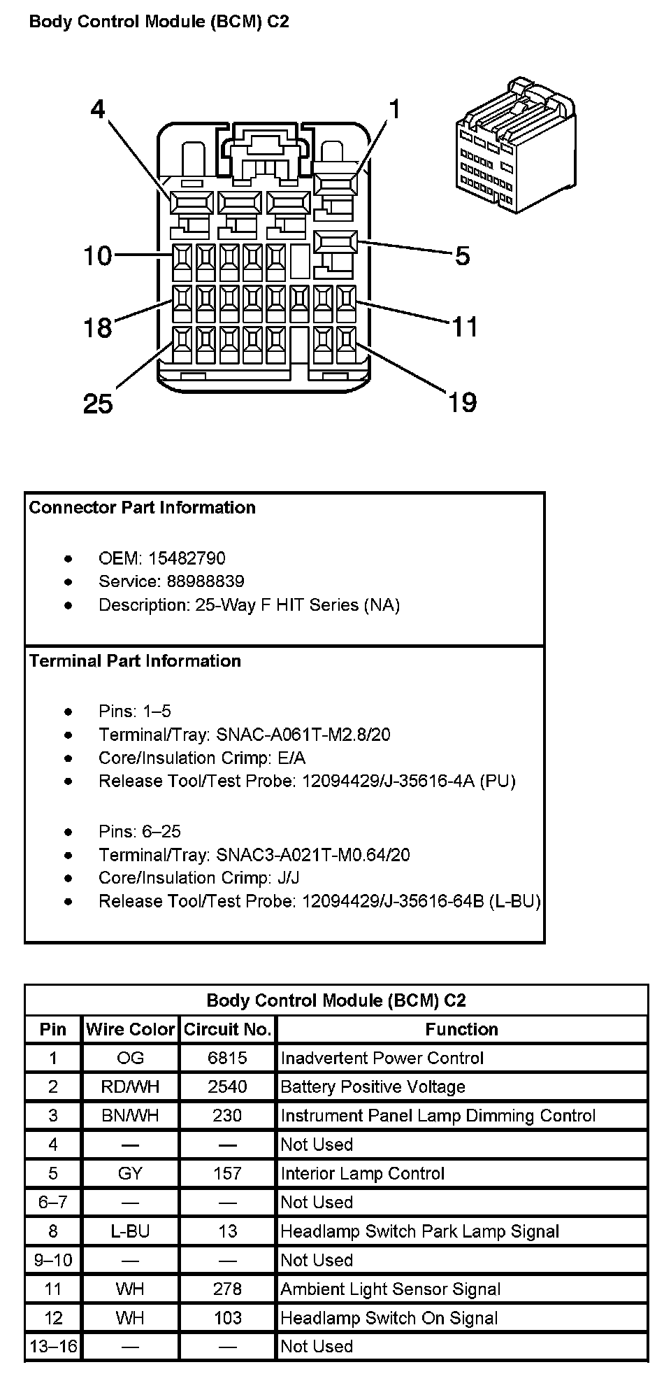 Body Control Module (BCM) C2 (Pin 1 To 16):