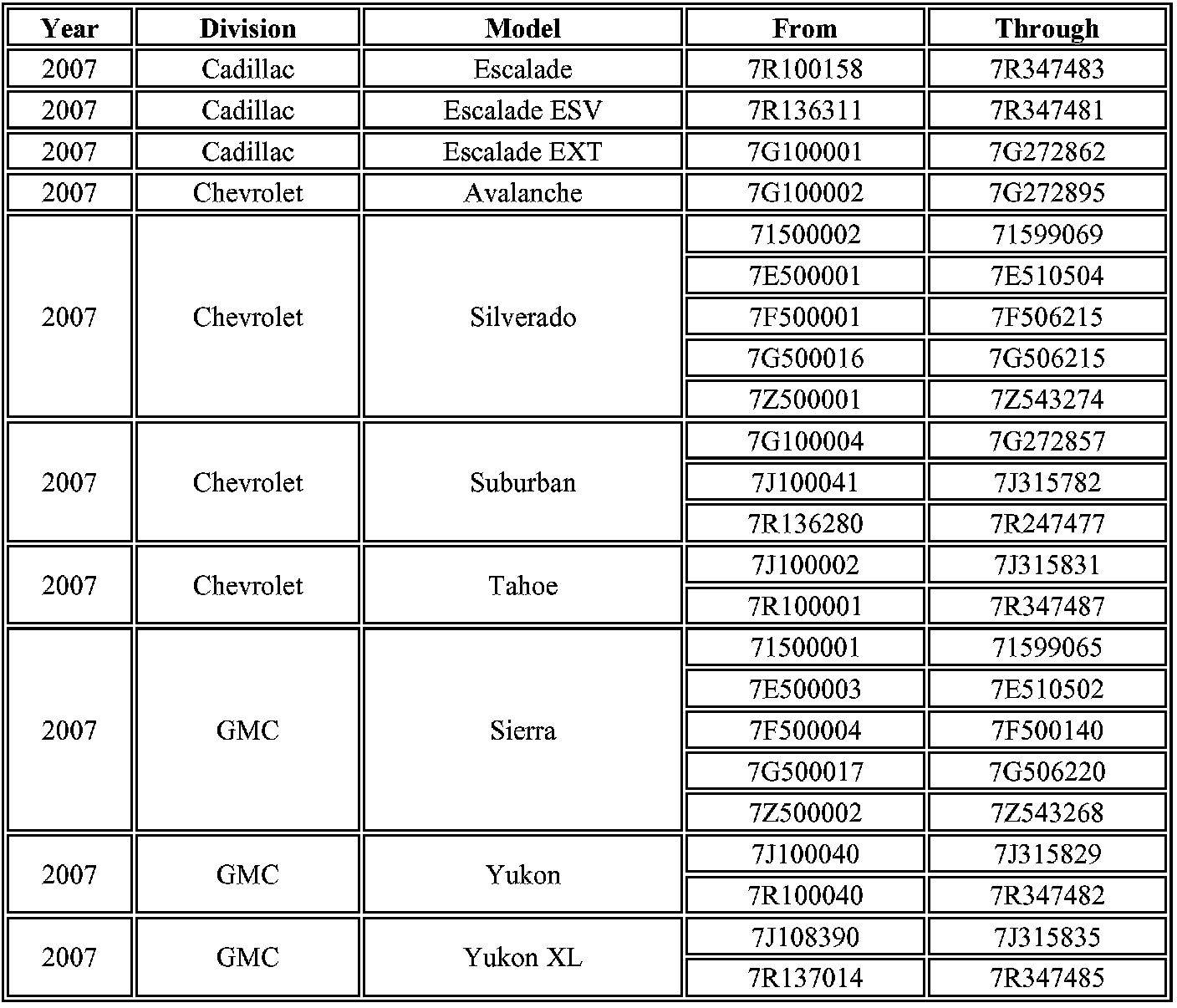2007 Chevrolet Avalanche, Silverado, Suburban, Tahoe