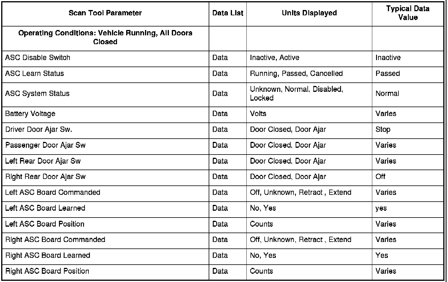 Assist Step Control Module Scan Tool Data List