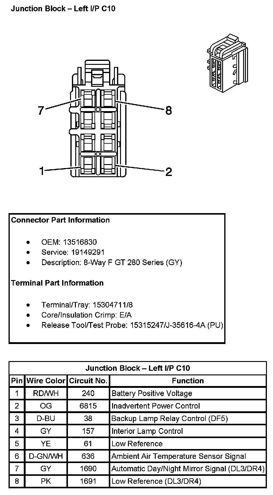 Junction Block - Left I/P C7 (With RPO Code JF4):