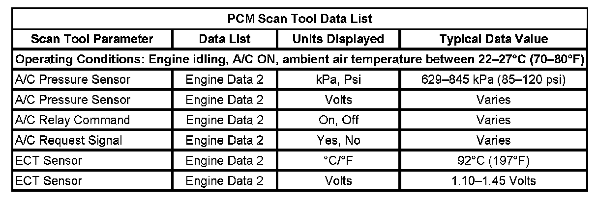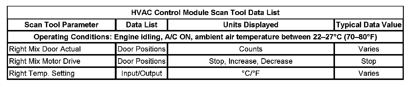 HVAC Control Module Scan Tool Data List:
