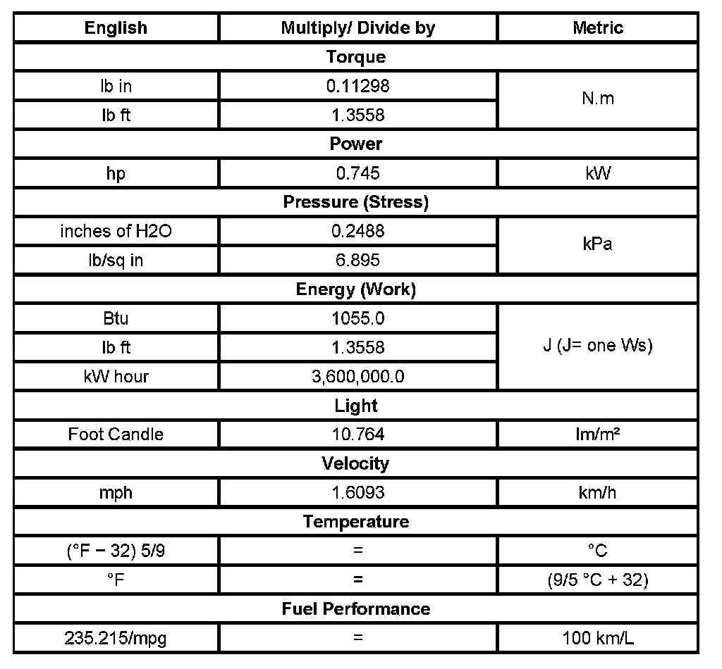 Conversion - English/Metric
