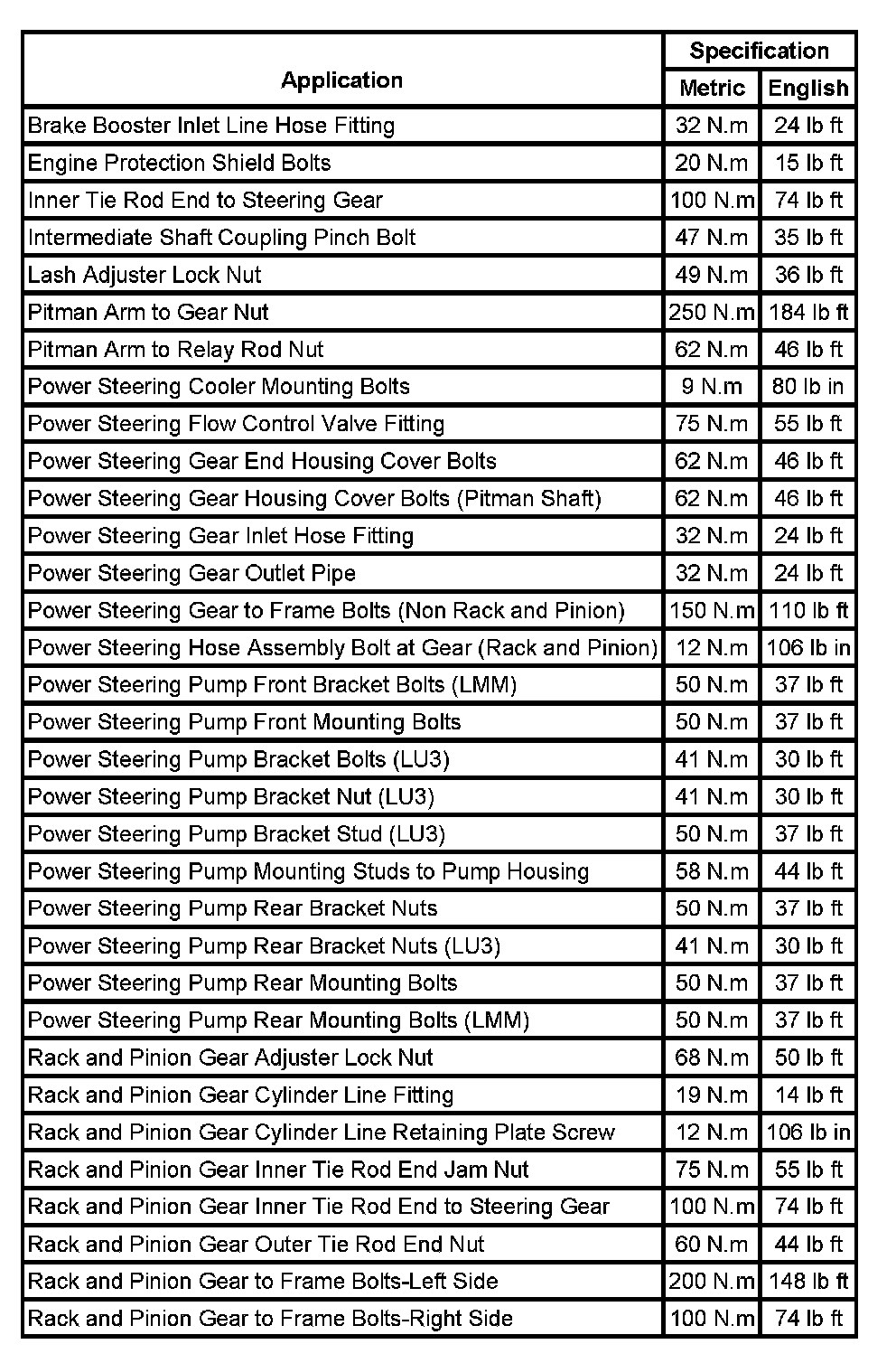 Fastener Tightening Specifications:
