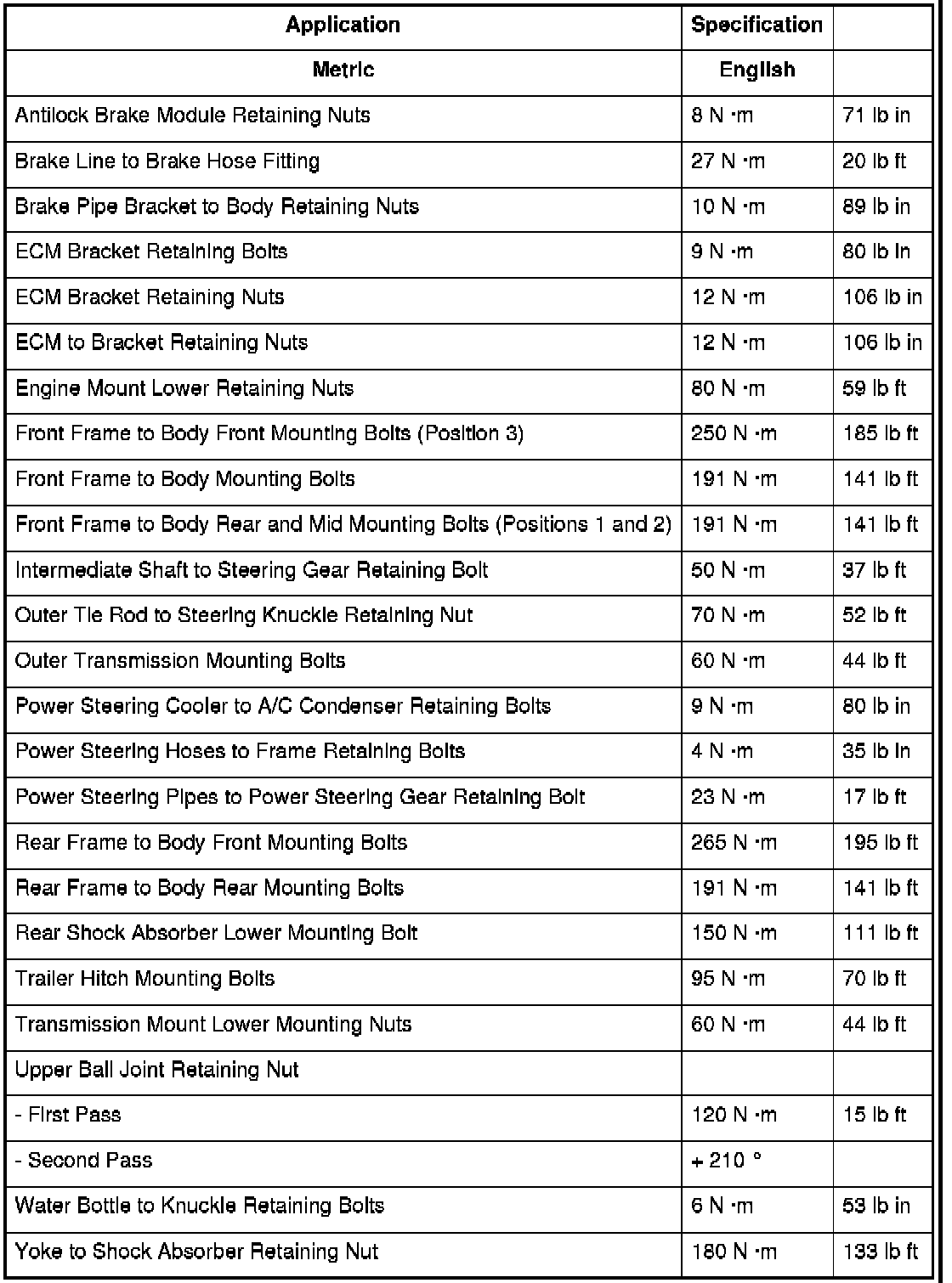 Fastener Tightening Specifications