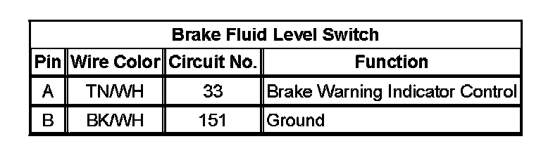 Brake Fluid Level Switch: