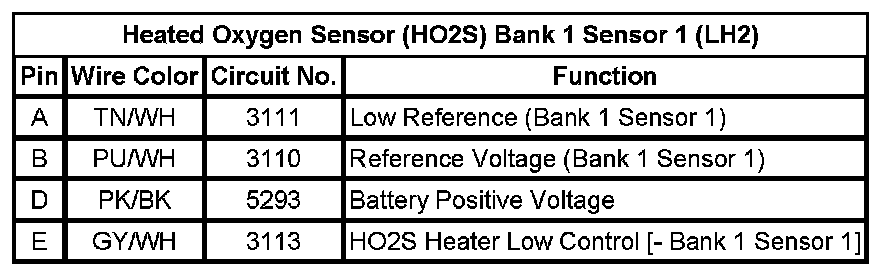 Heated Oxygen Sensor (HO2S) Bank 1 Sensor 1 (LH2)