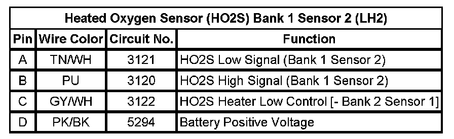 Heated Oxygen Sensor (HO2S) Bank 1 Sensor 2 (LH2)