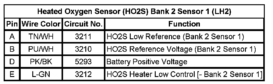 Heated Oxygen Sensor (HO2S) Bank 2 Sensor 1 (LH2)