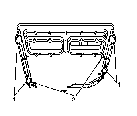 3. Remove the TCM from the mounting bracket by pulling back on the retaining tabs (1) to release the control module.