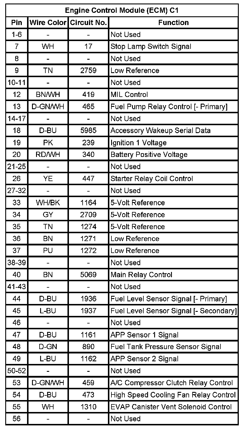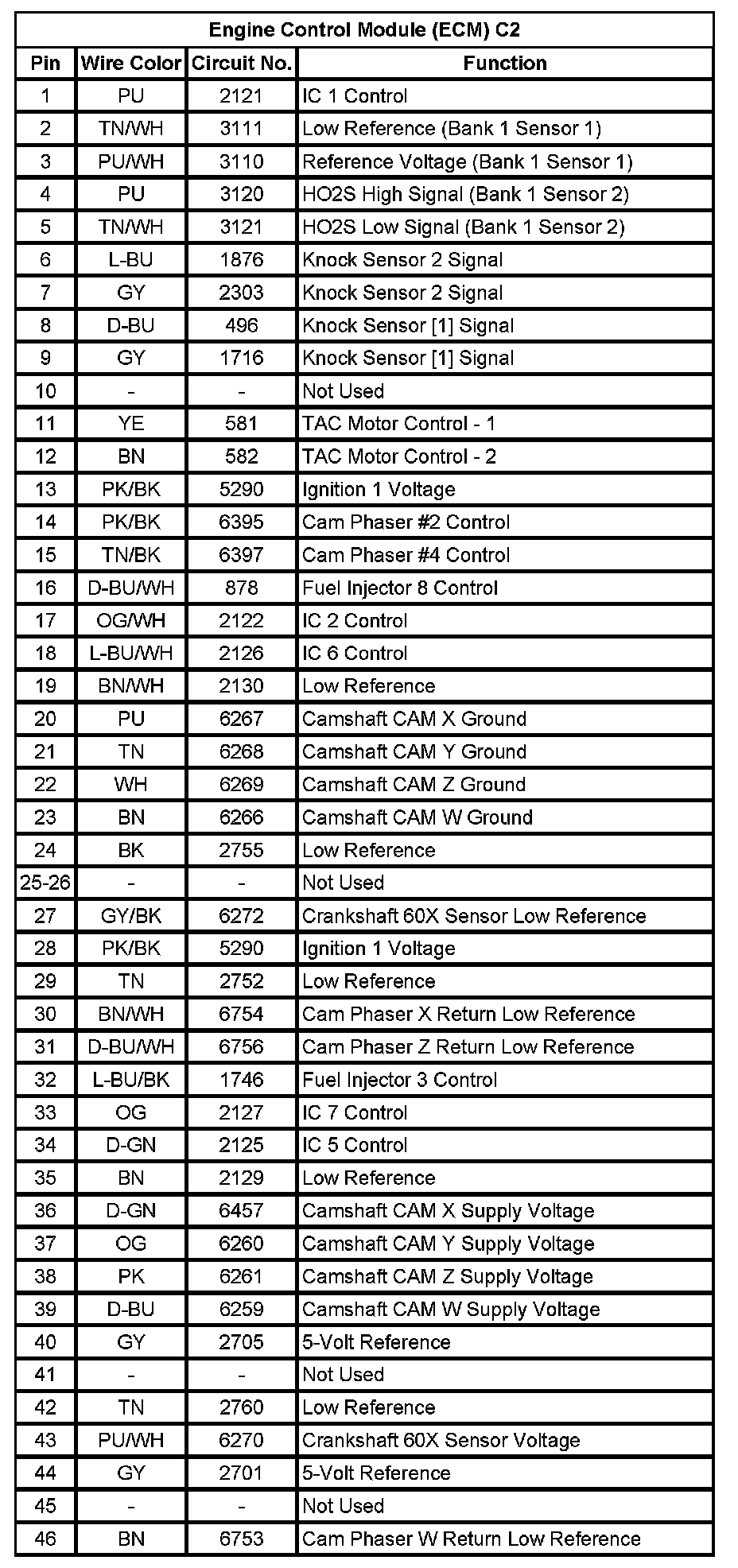 Engine Control Module (ECM) C2 (Pin 1 To 46):