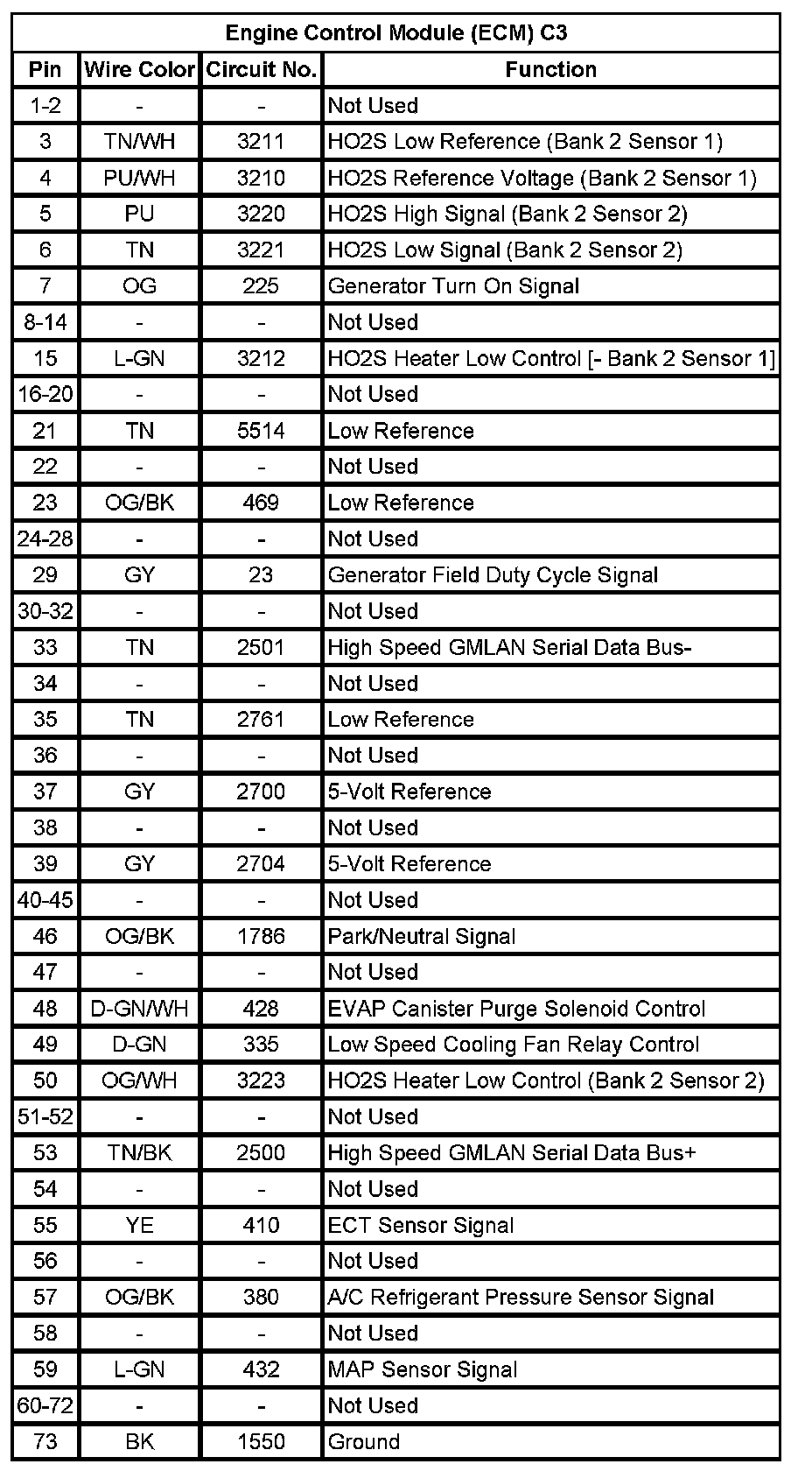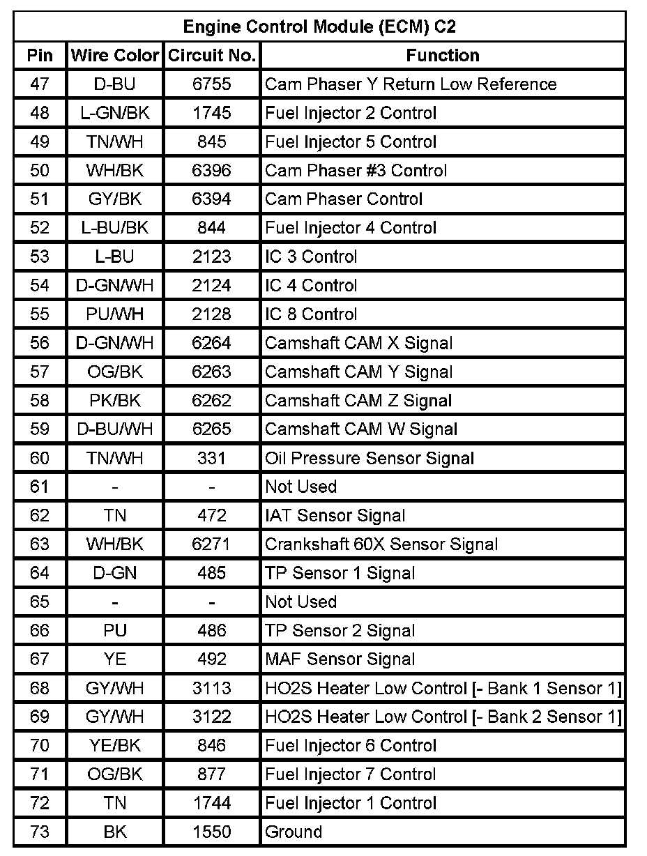 Engine Control Module (ECM) C2 (Pin 47 To 73):