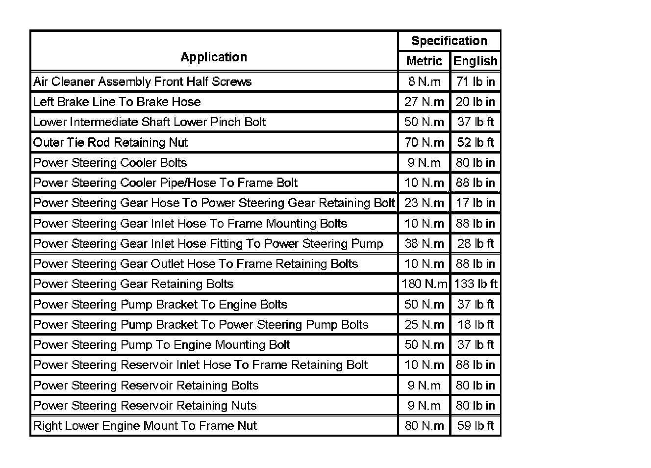 Fastener Tightening Specifications:
