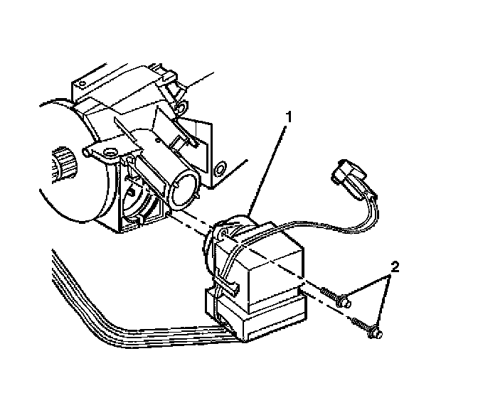 3. Install the theft deterrent control module (2) onto the ignition lock cylinder case (1).