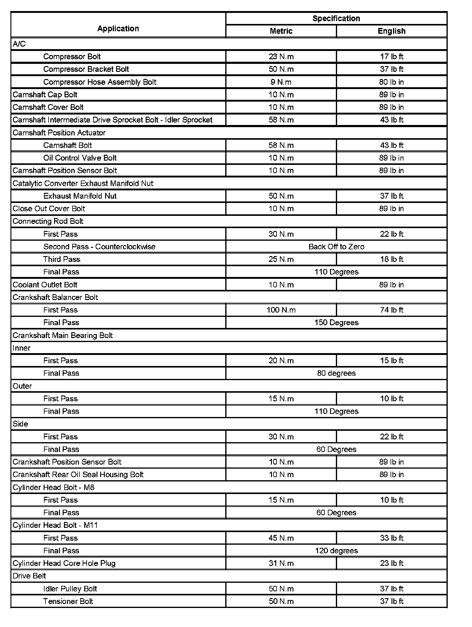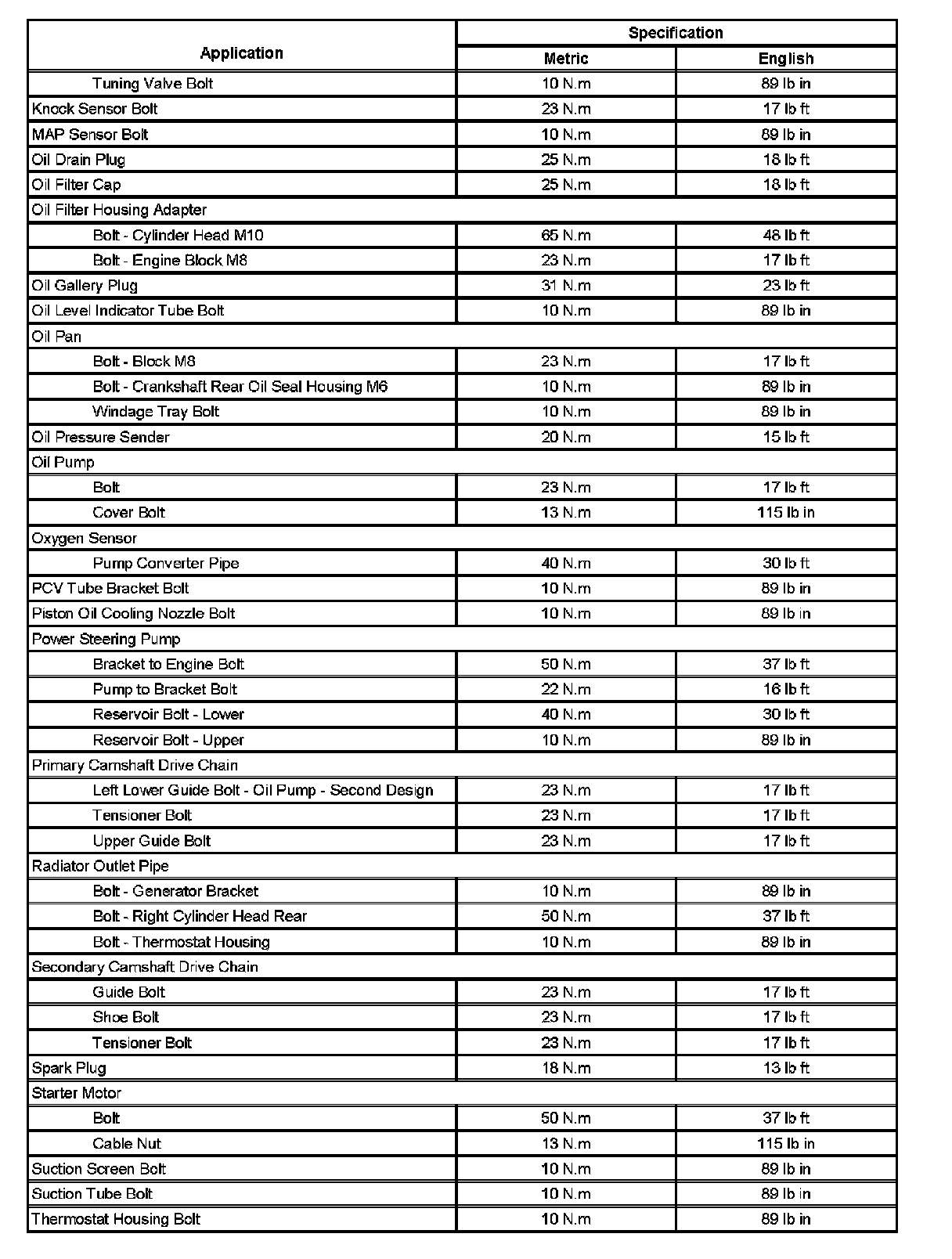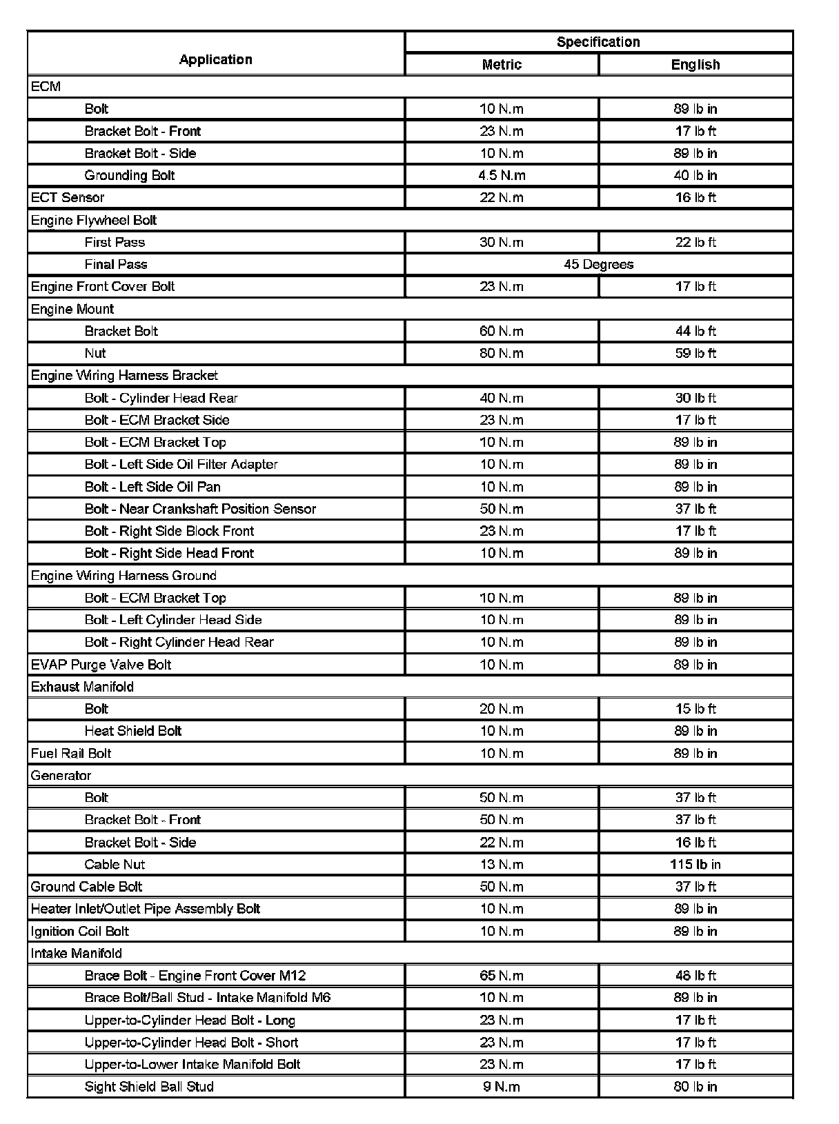 Fastener Tightening Specifications (Part 1):