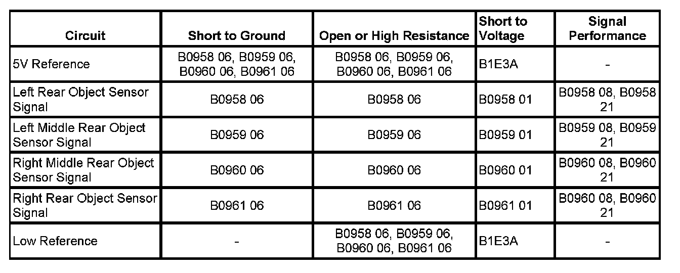 - Parking Aid Rear Sensor 1 Left Middle Circuit Short to Ground or Open