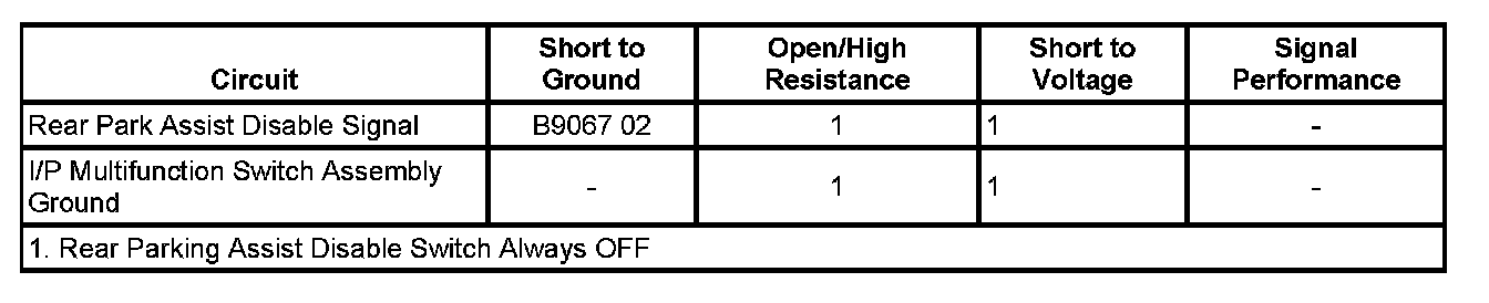 5. Ignition ON, transmission in REVERSE, verify that the scan tool Park Assist System Status parameter is Disable.