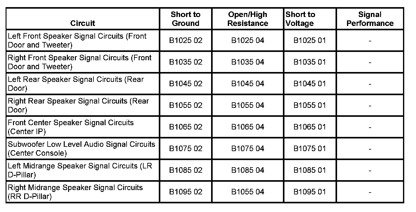 - Audio Output 1 Left Front Circuit Short to Battery