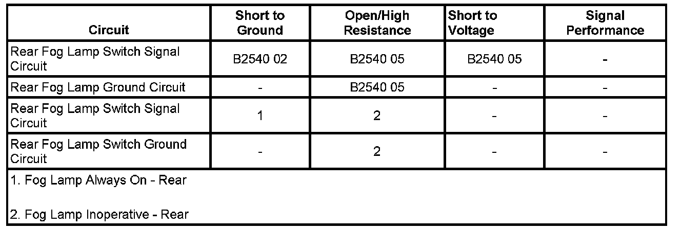 - Rear Fog Lamp Control Circuit Short to Ground