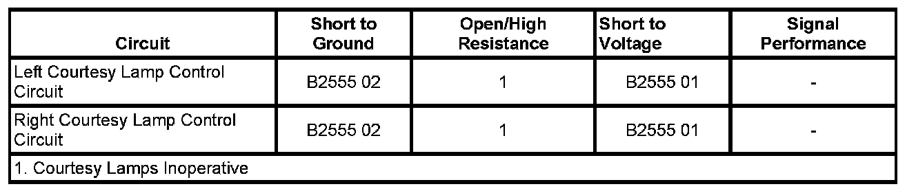 When this DTC is present, the door courtesy lamps will be inoperative.