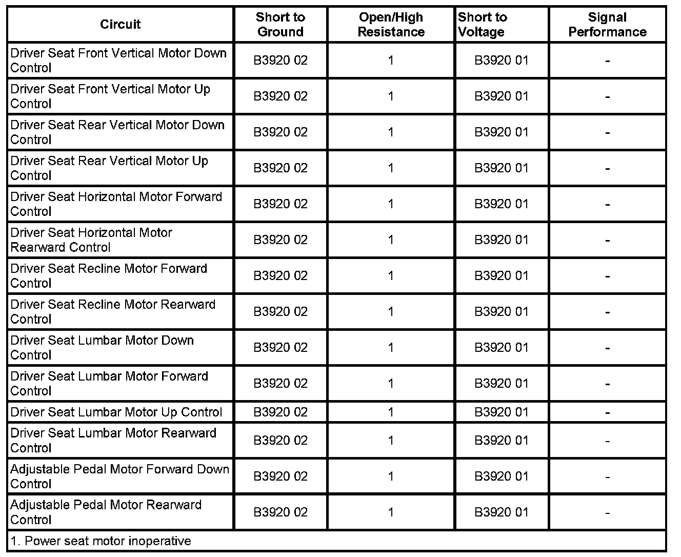 - Group 1 Seat Motors Circuit Shorted to Ground