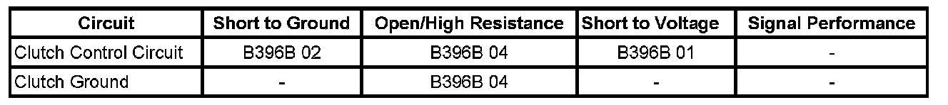 * The liftgate control module detects a low condition on the clutch control circuit while in an active state.