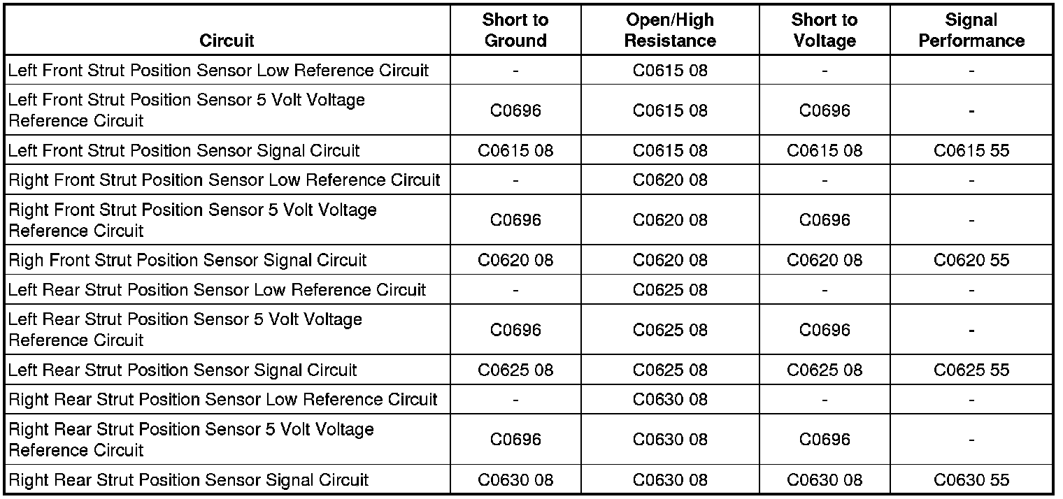- Left Front Position Sensor Circuit - Signal Invalid