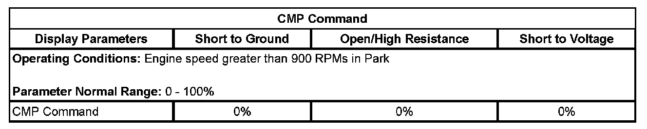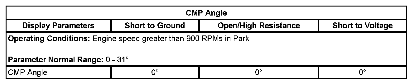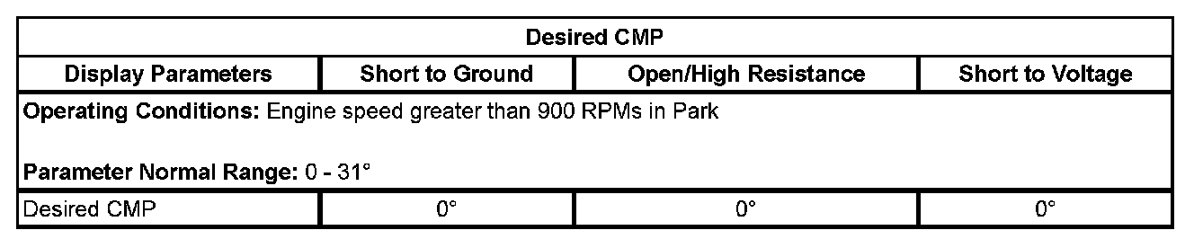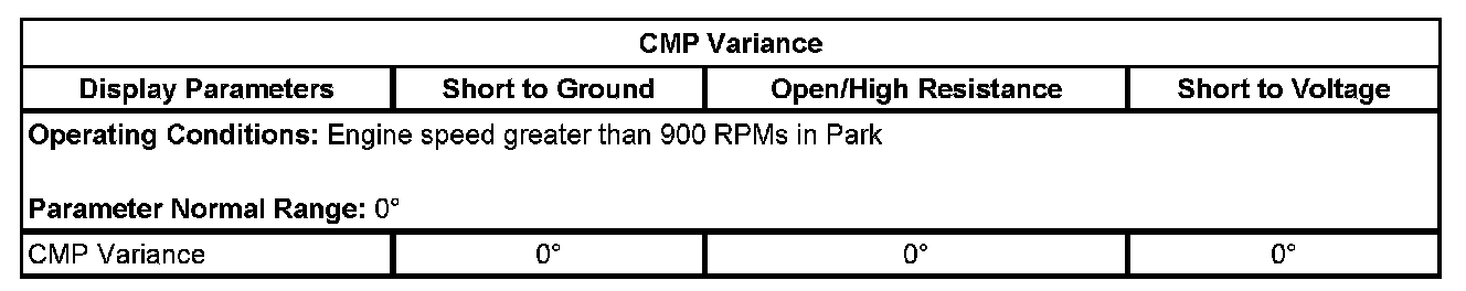 5. Observe the CMP Variance value, on the scan tool. The CMP Variance value will increment for several seconds, until the CMP Angle value matches the Desired CMP value. The CMP Variance value should then return to zero degrees.
