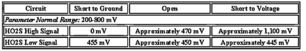 - The ECM detects that the HO2S 1 parameter is between 350-550 mV for 100 seconds.